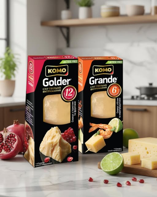 ТМ «КОМО» представляє преміальне пакування для сирів «Голдер» та «Гранде».