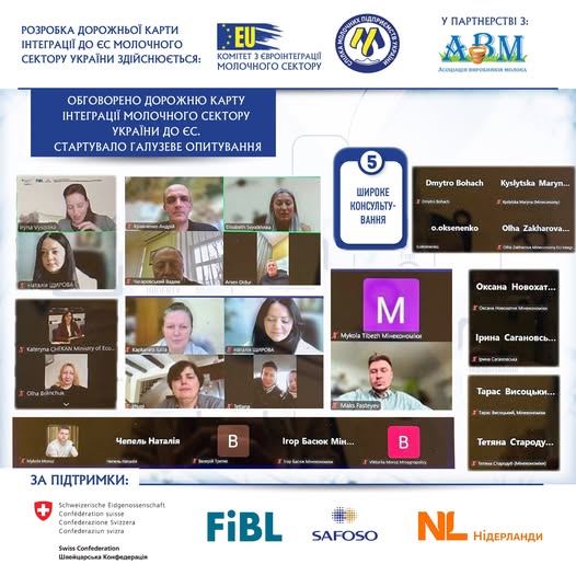 Відбулося детальне обговорення консультаційного проєкту Дорожньої карти інтеграції у ЄС молочного сектору України, яка визначає шлях переходу від поточного стану молочного сектору до його Візії 2030 та охоплює 11 тематичних напрямів розвитку.