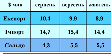 Обсяги експорту/обсяги імпорту: у 0,62 рази (у вересні–0,64; у серпні: 0,71 рази).