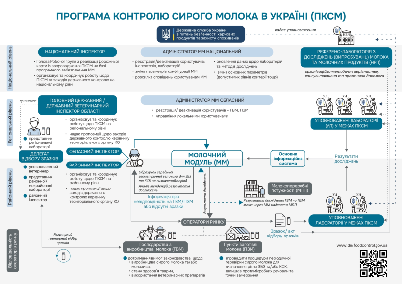 Довідково: Програма контролю сирого молока реалізується в Україні 7 років. Її мета — забезпечити регулярний моніторинг компетентним органом за впровадженням операторами ринку процедур періодичної перевірки сирого молока.